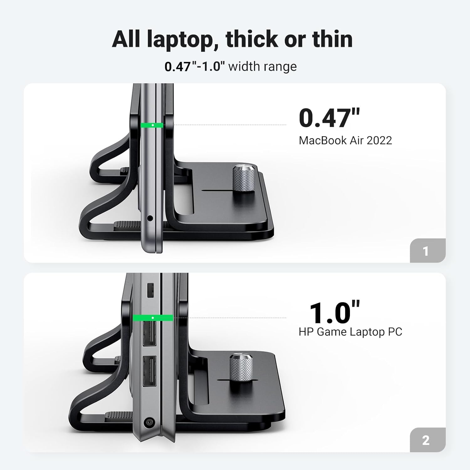 Регулируемая ширина: У стойки есть расширяющийся паз, который подстраивается под ноутбуки толщиной от 1.2 до 2.5 см. Просто покрутите винт — и подставка готова к работе с MacBook Air, MacBook Pro, HP, Dell Chromebook, ThinkPad и другими моделями с диагональю до 17.3 дюймов.