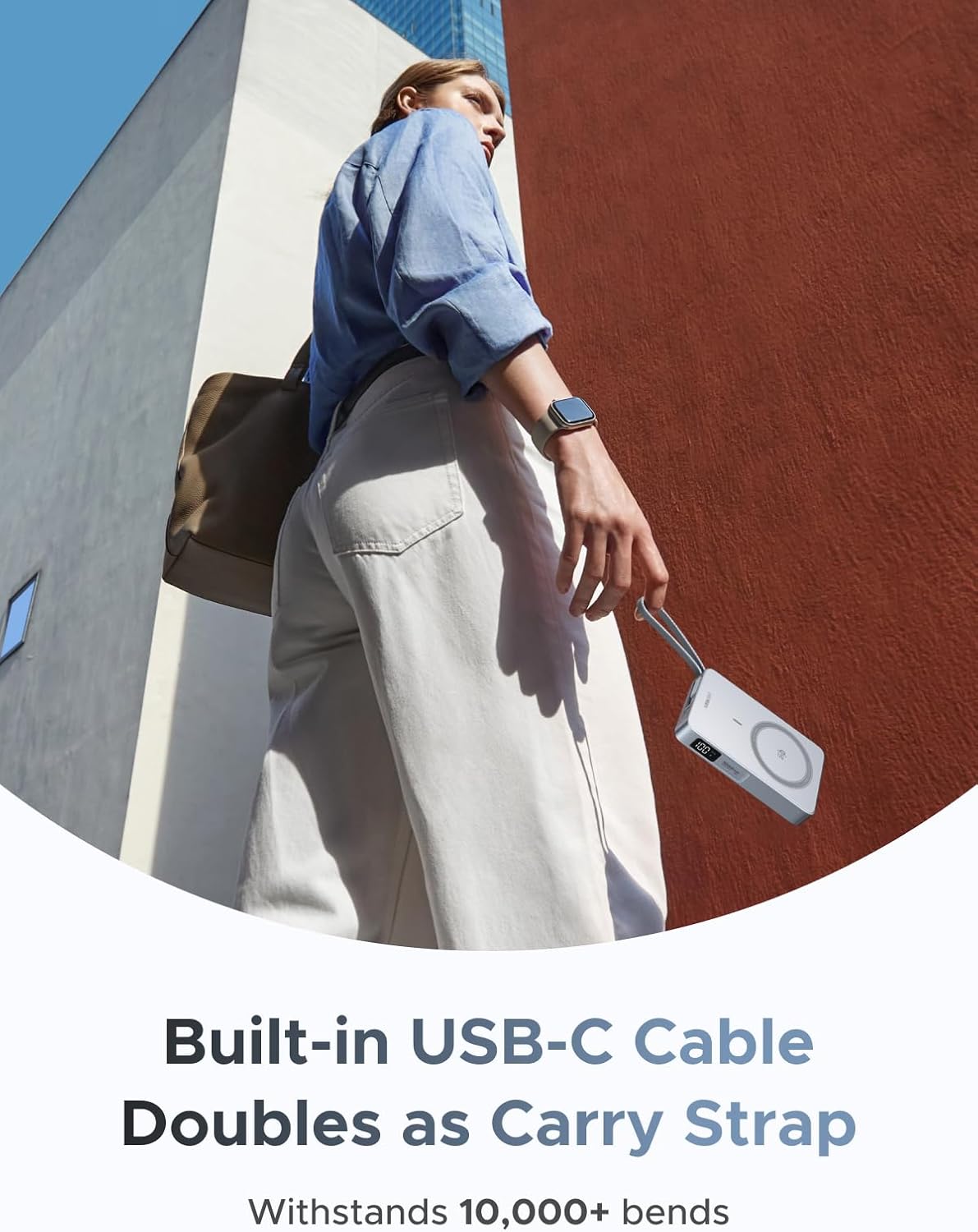 Встроенный кабель на 30 Вт — двусторонняя быстрая зарядка: Интегрированный кабель USB-C обеспечивает до 30 Вт проводной зарядки для ноутбука, планшета или второго телефона. Он же служит удобным ремешком для переноски, чтобы в сумке не болтались лишние провода.